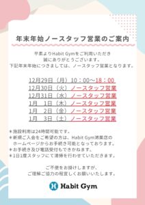 トレーニングサポートが予約なし無料、水素水サーバー無料、男女別更衣室、鍵付きロッカー無料、始めやすい24時間ジムとなってます♪鴻巣市でジムをお探しの方は、是非、Habit Gymにお越しください!