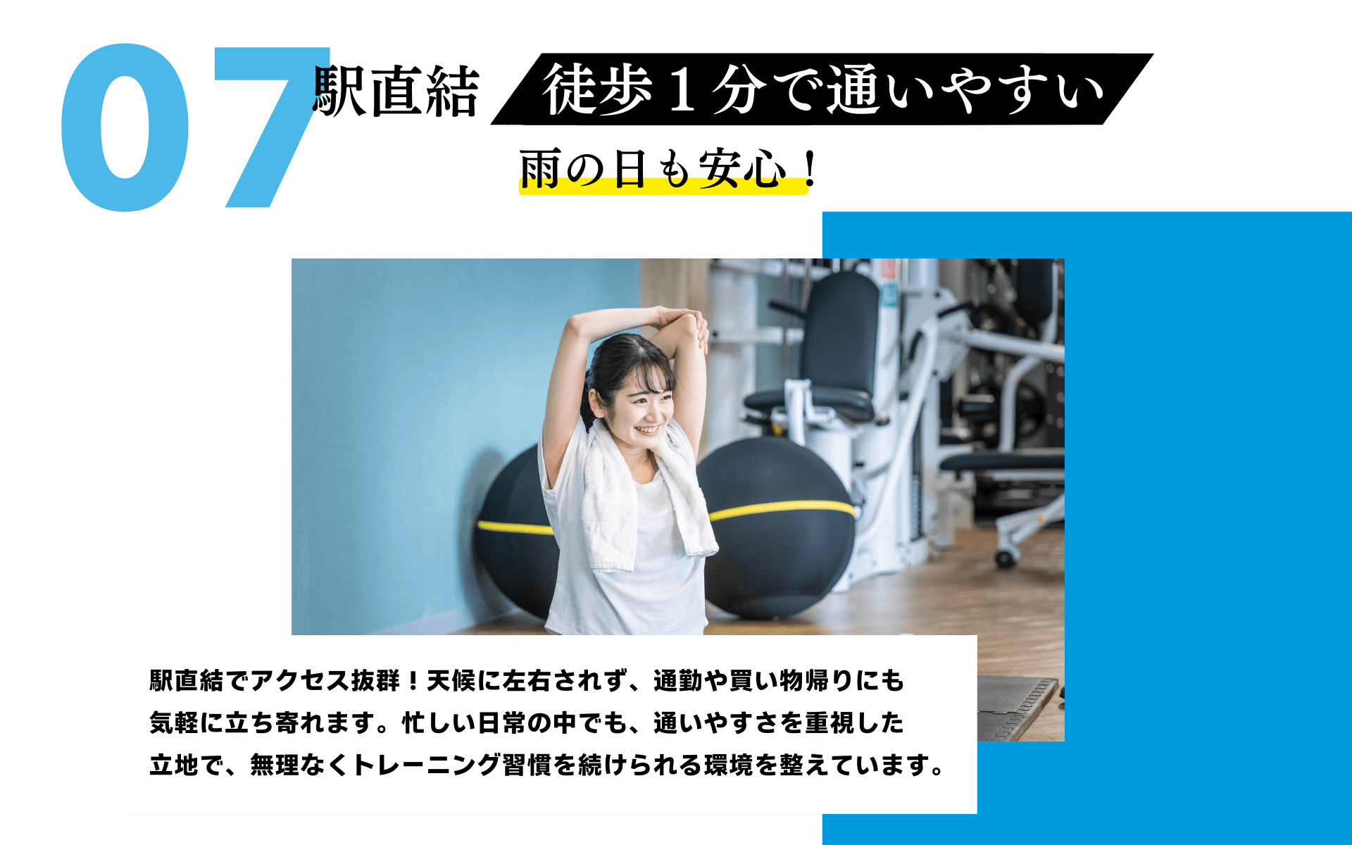 駅からの距離 | 駅直結 徒歩 1 分 | 徒歩7分 | 徒歩17分 |