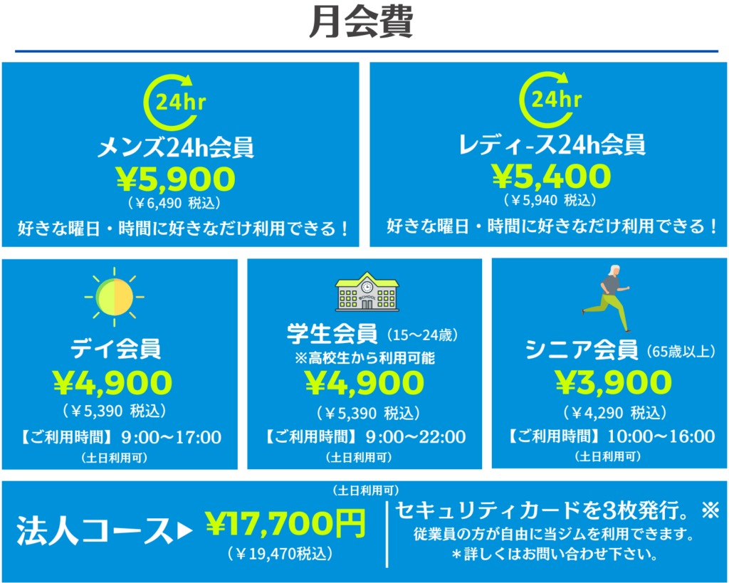 入会金 | 5,500 → 0円 | 14,000円 | 5,500円 |